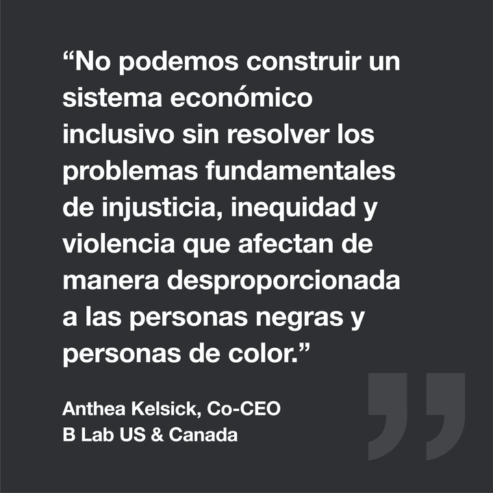 No es suficiente con ser antirracista en silencio. Anthea Kelsick, Co-CEO de B Lab Estados Unidos y Canadá, compartió una conmovedora carta con la Comunidad de Empresas B sobre la responsabilidad de los empresarios a la hora de condenar de manera clara y explícita el racismo inherente a nuestros sistemas económicos.